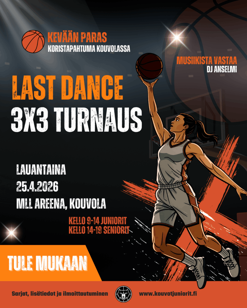 Kouvot ry jĂ€rjestÀÀ 3×3 Last Dance turnauksen myös tĂ€nĂ€ kevÀÀnĂ€ lauantaina 25.4.2026 MLL Areenalla! 🏀